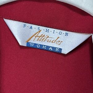 Fashion Attitudes Shirt Elegant Button Down Long Sleeve Red Shoulder Pads 18W
