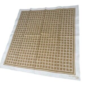 Made from a silk blend satin fabric with a beige & cream color, this square scarf features the iconic designer logo and pattern throughout.
