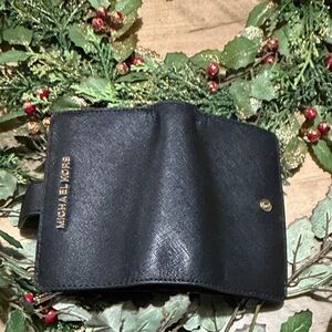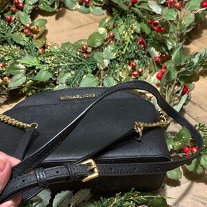Authentic Michael Kors chic black crossbody bag with matching wallet. Features gold-tone accents. Ideal for versatile styling. Crossbody measures 9x7, has outer front pocket ideal for your phone. The inside has 2 pockets in which 1 zips.