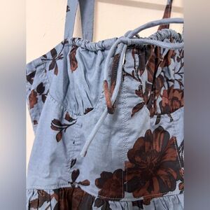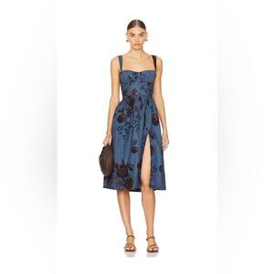 FREE PEOPLE Laters Baby Midi Dress in Storm blue and brown Combo Size Small