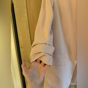 Chic and stylish blazer from Express. Ideal for work or casual outings. Soft color enhances versatility. Ruched 3/4 sleeves, oversized fit. Great used condition; dry cleaned.