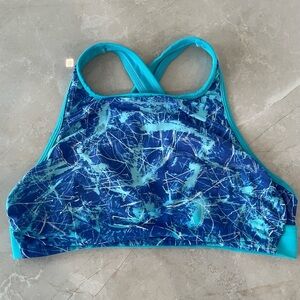 Reebok Woman's Sports Bra Size in Photos Blue Marble High Neck Feminine Sporty