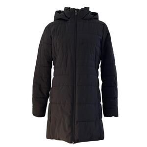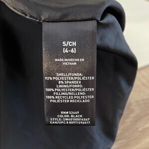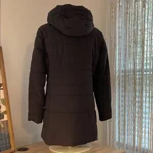 Quilted black women’s jacket. Feels like down! Pockets are zippered. True to size. Only worn on one vacation trip!