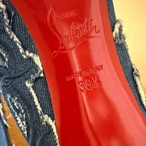 Stunning denim heels with intricate embroidery. Perfect for elegant occasions. Bought and never worn.