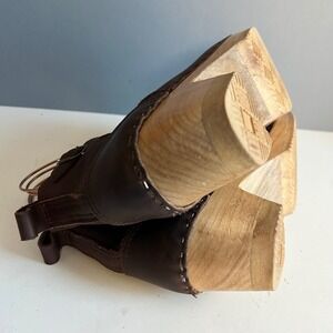 No 6 clog ankle boots size 8 / 38 brown Moto Leather Wood Heel Buckle Swedish