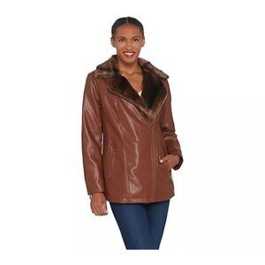 Dennis Basso Madison Avenue Faux Leather Moto Jacket Size 16