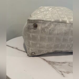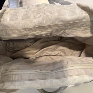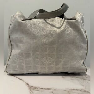 Chic CHANEL tote in cream. Features elegant design and sturdy handles. Good condition.