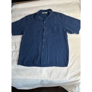 Tommy Bahama Blue Shirt Mens XL 100% Silk Short Sleeve Button-Up