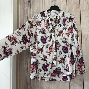 Liz Claiborne Womens Split Tie Neck Long Sleeve Blouse 3X