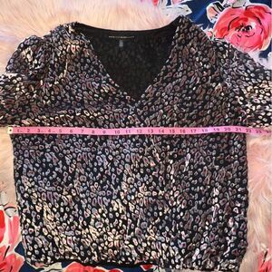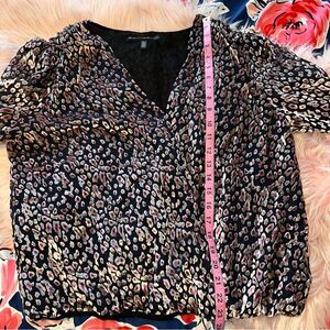 WHBM Floral Pattern Blouse with Choker Large Velvet V Neck Black Pink Party