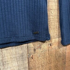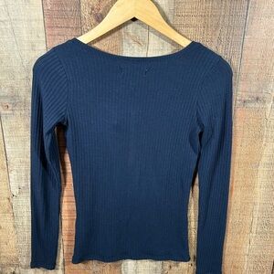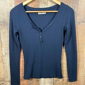 Hollister Y2K 2000s Ribbed Henley Top Navy Blue Long Sleeve Fitted Small Shirt