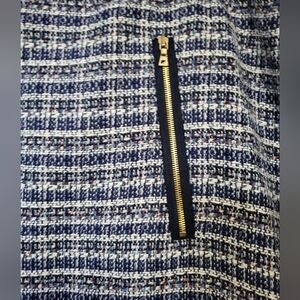 Elevate your wardrobe with this elegant blue tweed mini skirt. Perfect for any occasion, it features stylish zipper accents for a modern look.