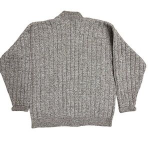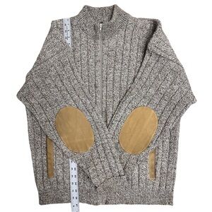 Vtg Orvis Marled Beige Wool Knit Full Zip Elbow Suede Patch Cardigan Large EUC