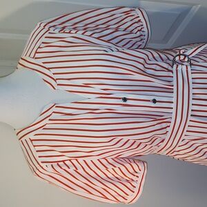 Adorable striped button front dress with a mandarin collar by karl lagerfeld. Would be great for a holiday christmas party.