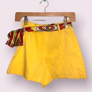 Gem alert!!! True vintage 60s mod banana yellow skort with the grooviest ever sash. In amazing vintage condition, and 100% cotton (so rare for a piece from this time to not be poly!) size 8 but fits like XXS/XS (measurements pictured). Made in japan.