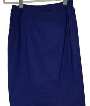 Anthropologie Belted Pencil Skirt in a classic navy blue, size XS. This stylish skirt features a belted waist for a flattering silhouette and a sleek pencil cut. Perfect for professional settings or dressed up for a chic casual look. Made from a comfortable blend of 54% Viscose, 41% Cotton, and 5% Elastane, offering both stretch and structure. Machine washable for easy care. New with tags, ready to wear.