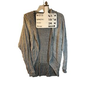 Womens Gray Striped Y2k Cardigan Sweater Open Front Lightweight Size S