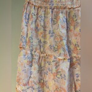 The Hippie Rose mini skirt is a delightful blend of pink and tan hues, perfect for casual or resort wear. Its bubble style features a charming ruched and tiered design, offering a playful and airy silhouette. Crafted for comfort and style, this skirt is an ideal choice for those seeking a chic and relaxed look.