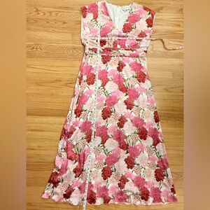 Elegant maxi dress with vibrant pink floral pattern. Leah floral georgette gown. Features a flattering waist. Stunning and extremely flattering. Worn one time to a rehearsal dinner. Received a lot of compliments.