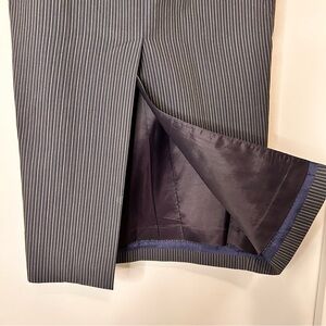 A sleek, tailored pinstripe pencil skirt designed to elevate any wardrobe. Crafted with a flattering high waist and a clean, elongated silhouette, this skirt hugs smoothly through the hips and falls effortlessly for a polished, luxury finish. The fine vertical pinstripes create a slimming effect, making it perfect for both refined daywear and elevated evening looks.