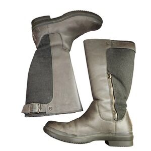 UGG Waterproof Leather Suede Tall Boots Women's Size 7.5 Gray Zip Buckle
