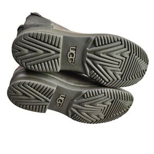 Keywords: UGG boots, waterproof, leather, suede, tall boots, gray boots, zip closure, buckle detail, outdoor, casual, winter boots, rain boots, lug sole, women's footwear
