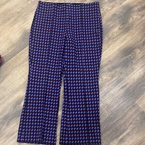 These are the Maeve The Margot Kick-Flare Cropped Pants from Anthropologie. The style of these pants features a high-rise waist and a kick-flare silhouette that is fitted through the hip and knee before flaring out to an ankle length. They are a pull-on style made from a comfortable and stretchy blend of viscose, nylon, and elastane.