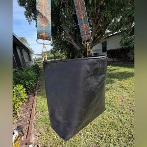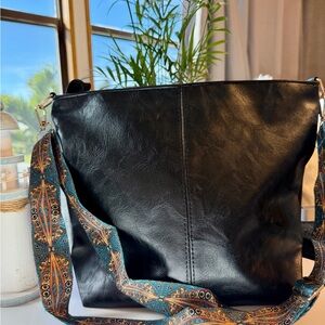 Brand new…Stylish black leather shoulder bag featuring a unique patterned strap. Perfect for adding a touch of elegance to any outfit. …Beautiful, lightweight and Elegant, This stylish Black leather shoulder/Crossbody bag is perfect for any occasion. Its sleek design and high-quality material make it a must-have accessory. Elevate your outfit with this versatile and chic bag. Adjustable straps and removable, guitar straps hobo, top zipper closure! Made in USA, Gold hardware!