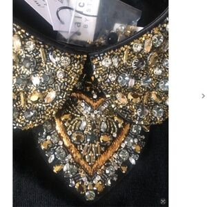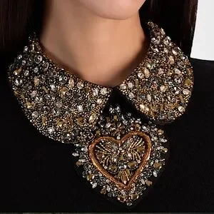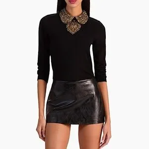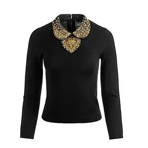 The Porla top from Alice + Olivia is crafted of stretch wool and features an embellished collar and heart motif.