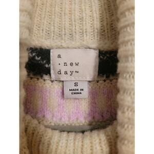 A New Day Fair Isle Turleneck Sweater Womens Sz Small Ivory Purple Black Gray