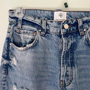 EUC the Gavin jean in blue reservoir from Anine Bing! No flaws. Features factory stylized distressing, raw hem and straight leg style. Classic and super high quality! These are a perfect go-to, easy to dress up or down! Flattering and chic, a closet staple!
