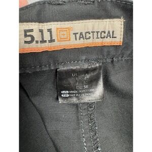 511 Tactical black cargo pants in a men's tag size of 42x34, with an actual measurement of 38x32 with some stretch for a wider waist, and in good condition.