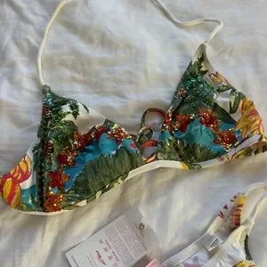 Chic bikini set with floral pattern. Ideal for beach outings.