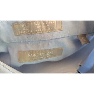 Nordstrom Smartcare dress shirt, a true workhorse for any professional or business casual setting. Its wrinkle-free, 100% cotton fabric means you can look sharp all day long without the hassle of ironing. The timeless button-down style in a lovely pastel blue hue is a perfect way to add a touch of color and sophistication to your outfits. It's perfect for a day at the office, a special occasion, or a polished yet casual look. The classic fit is comfortable and flattering, making it a reliable staple. This shirt is a must-have for anyone who appreciates quality and effortless style!