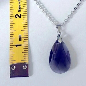 Purple Crystal Teardrop Stainless Steel Necklace NWT