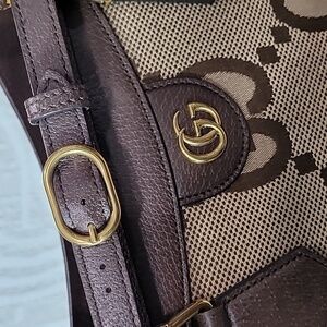 Elevate your style with this Gucci tote bag featuring iconic bamboo handles. The brown design adds a touch of elegance to any outfit. The bag is in excellent condition. Please check pictures for more details.