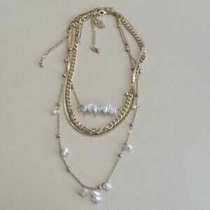 Multi layered boho pearl necklace set in gold tone hardware
