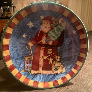 Christmas Santa Dessert Salad Accent Plate 8” Primitive Vintage Style