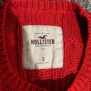 Hollister sweater in excellent condition. Cable-knit 100% cotton in solid red and size Small. Buy right away and it'll arrive in time for that Christmas party!