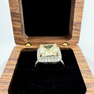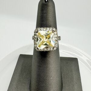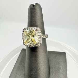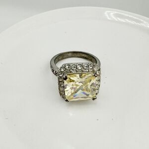 Vintage Citron Square Rhinestone Statement Ring Art Deco Glam Regency Retro