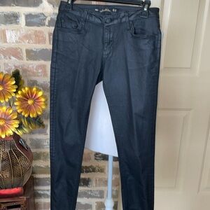 ZARA Premium Denim Black Coated Skinny Jeans Size 4. These skinny jeans are crafted with a luxe coating sure to turn heads. Cropped just at ankle. Sits between waist and hip. Match this much loved style with knits and heels to elevate your off duty look. Zip fly and button closure, belt loops and classic five pocket design. Skinny fit. Coated Denim. Black rivets and button. Excellent Condition. Approximate measurements and photos.