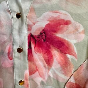 Calvin Klein Floral Sheer Blouse Top Ruffle Split Bell Sleeves | Size L | NWOT