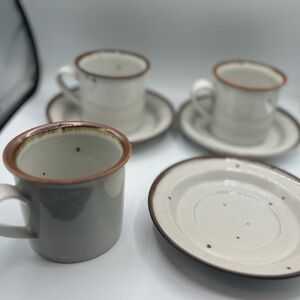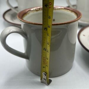 Aesthetic: Minimalist MCM Vtg 4 Sets Dansk Mugs Cups and Saucers Sandstone Brown Band Stoneware NIELS REFSGAARD Denmark
