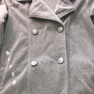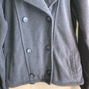 Magellan Women’s Pea Coat, Fleece Jacket, Large, Gray, Double Breasted Look, good pre-owned condition, pet free/smoke free home