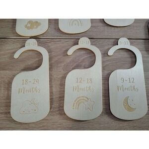 Organize your little one's wardrobe with these charming wooden baby clothes size dividers. Each divider is meticulously crafted and features adorable engraved designs, making it a delightful addition to any nursery. Effortlessly sort outfits from newborn to 18-24 months, ensuring you can quickly find the perfect size for your growing baby. These make a thoughtful and practical gift for baby showers or new parents preparing their nursery.