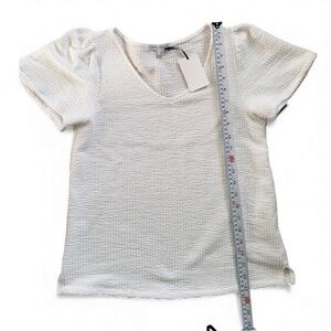 White textured short-sleeve top with a flattering scoop neckline and subtle stretch. Made in the USA.