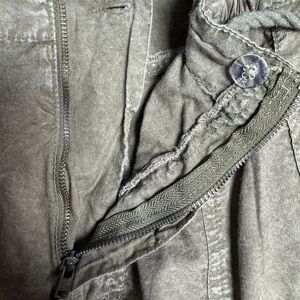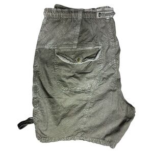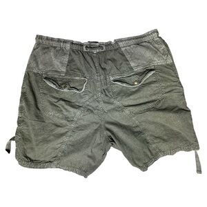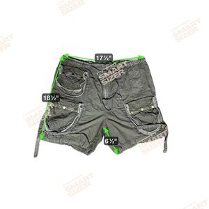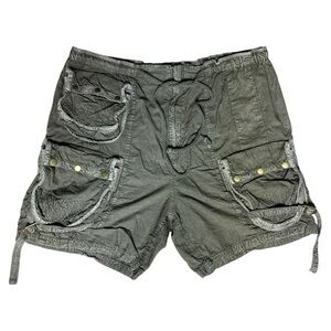 Rugged Olive Green cargo shorts. Multiple pockets with button details. Ideal for everyday wear.