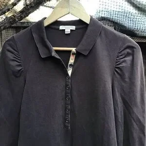 Burberry Brit Nova Check Brown Stretch Long Sleeve Polo Shirt Women’s Large