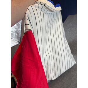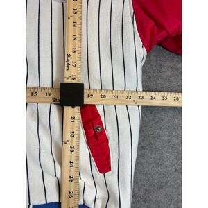 Vintage 90s Chicago Cubs MLB Columbia Reversible Pinstripe Bomber Jacket Mens Medium White Red Blue Baseball Y2K