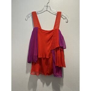 Adam Lippes Size 2 Layered Colorful Silk Top Fairy Purple Red Fairy Boho READ
